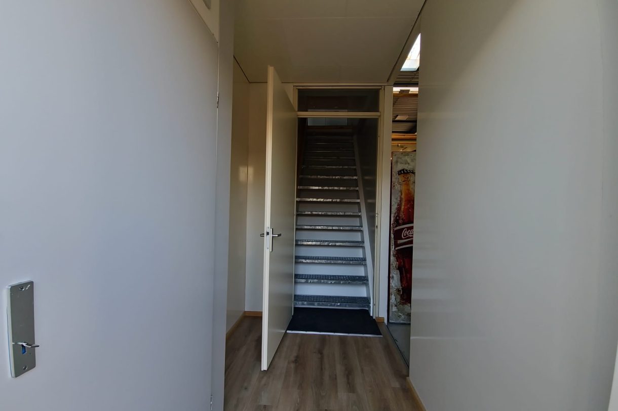 – Twee lagen met vaste trap en vide t.b.v. bereikbaarheid met heftruck;