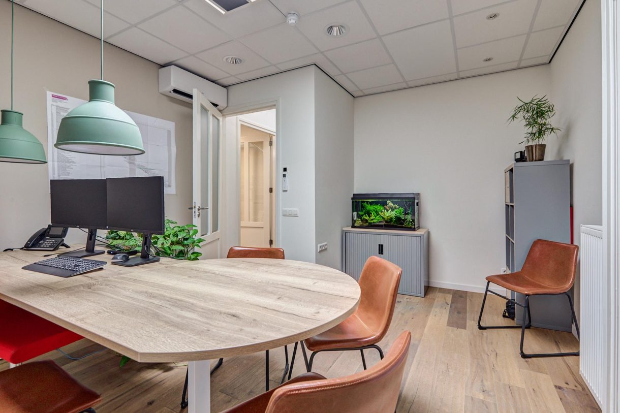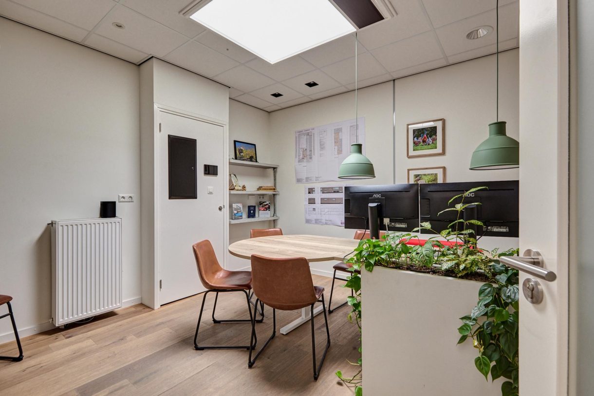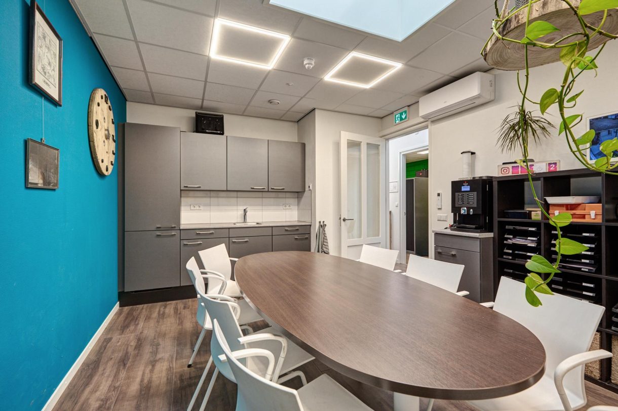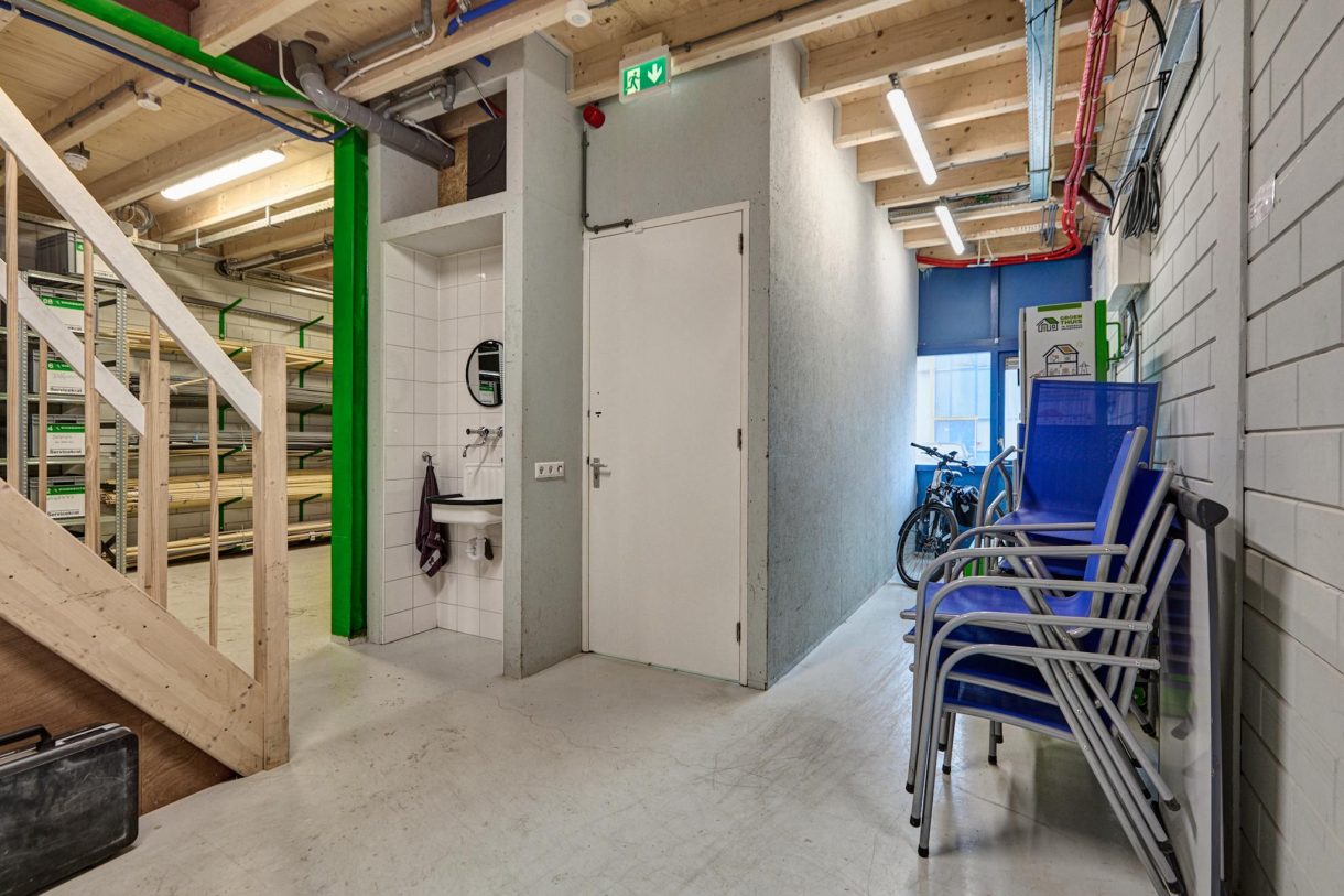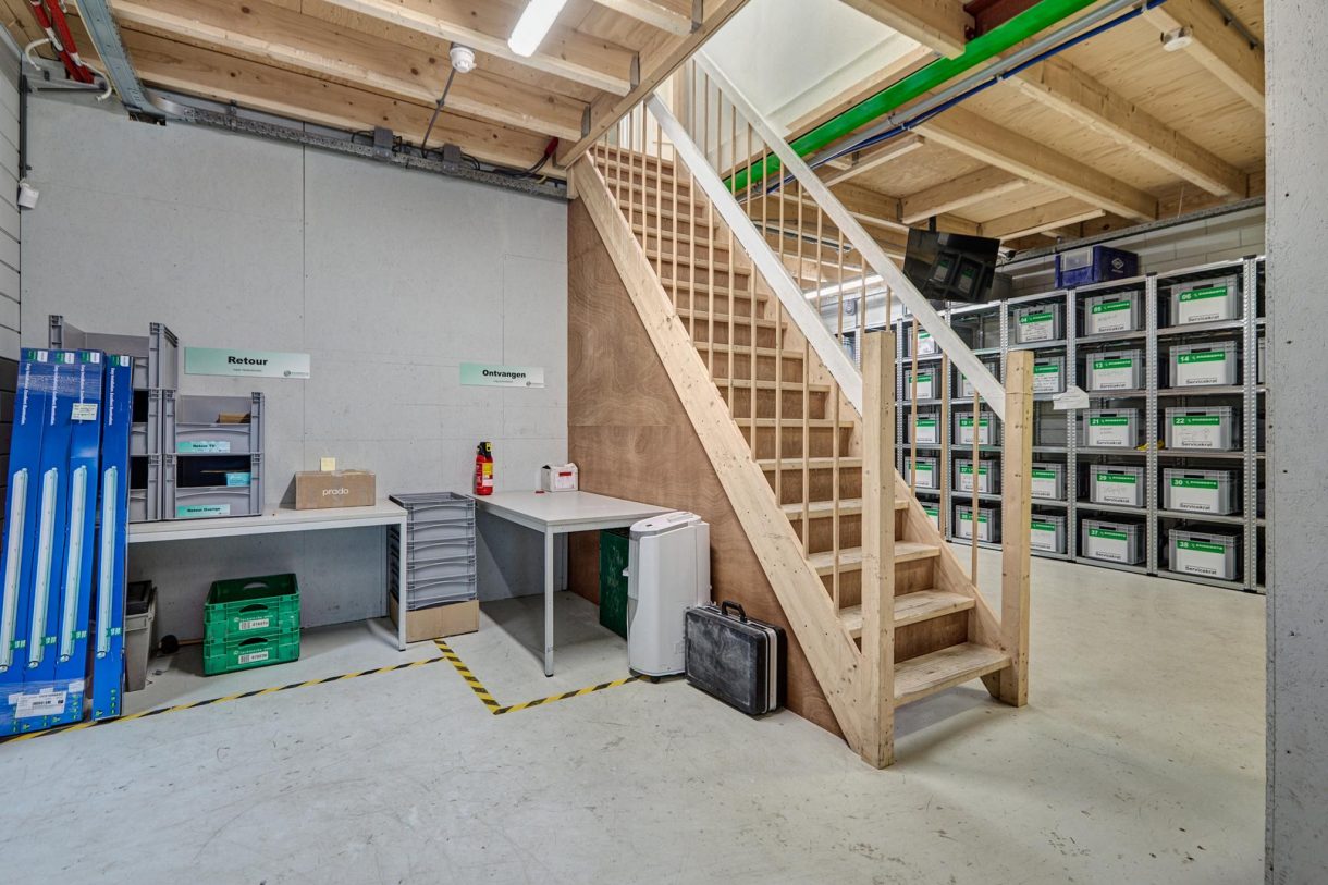 Op de etage bevinden zich de spreekkamer/directiekamer, de kantine, twee kantoren met diverse werkplekken en een archiefruimte. Door de aanwezige lichtkoepels, airconditioning en vloerverwarming zijn deze ruimtes uiterst aangenaam. In elke ruimte is bovendien gedacht aan UTP aansluitingen.
