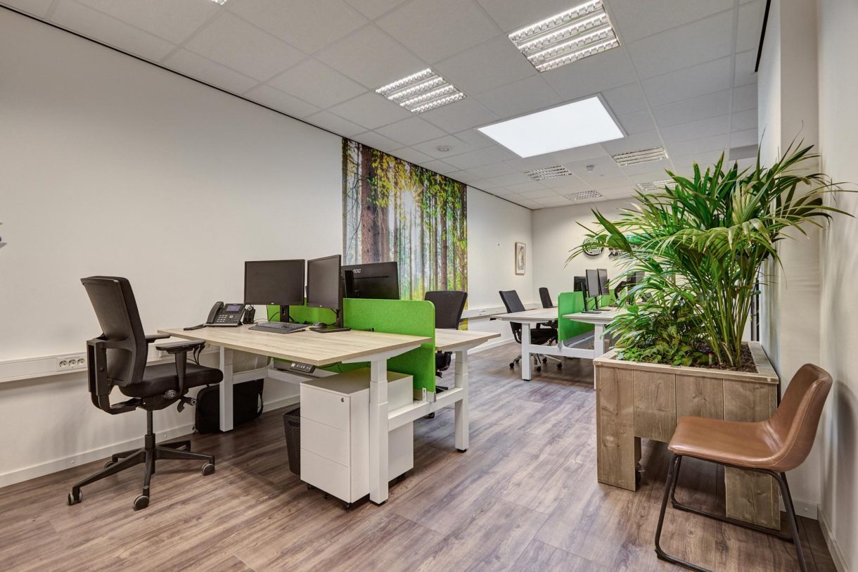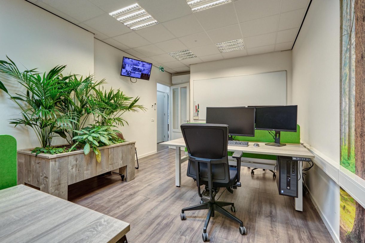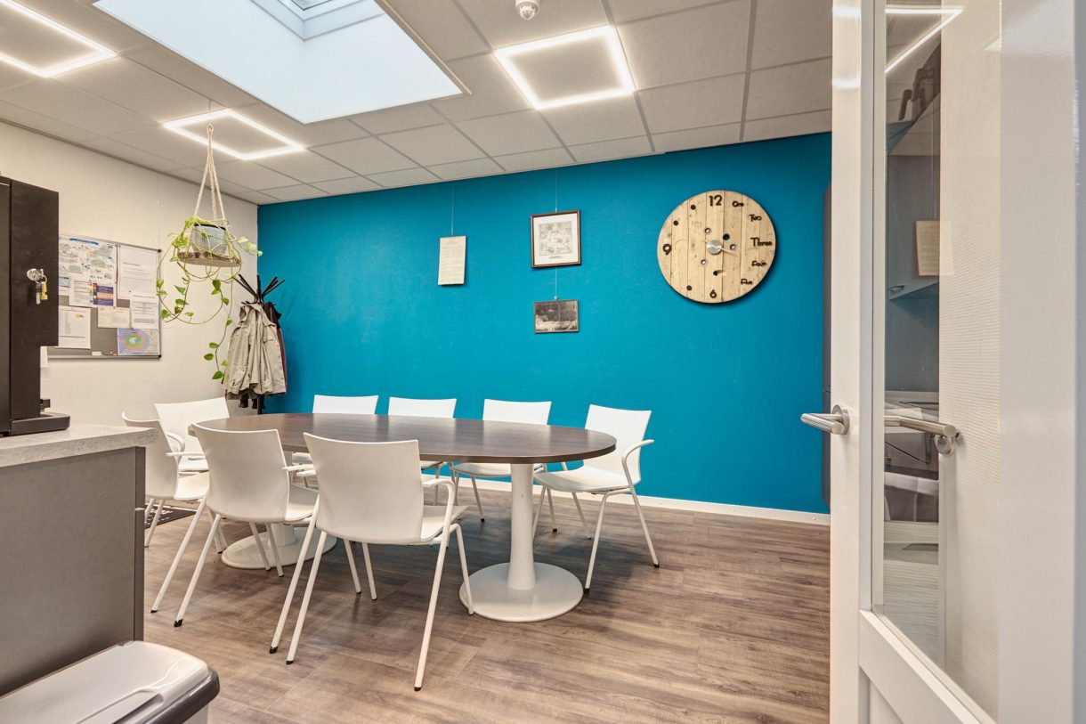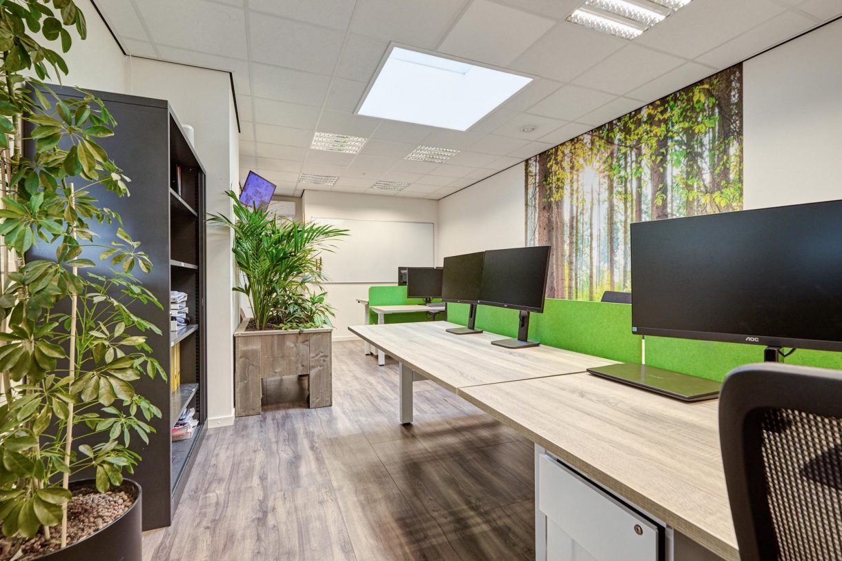 Op de etage bevinden zich de spreekkamer/directiekamer, de kantine, twee kantoren met diverse werkplekken en een archiefruimte. Door de aanwezige lichtkoepels, airconditioning en vloerverwarming zijn deze ruimtes uiterst aangenaam. In elke ruimte is bovendien gedacht aan UTP aansluitingen.