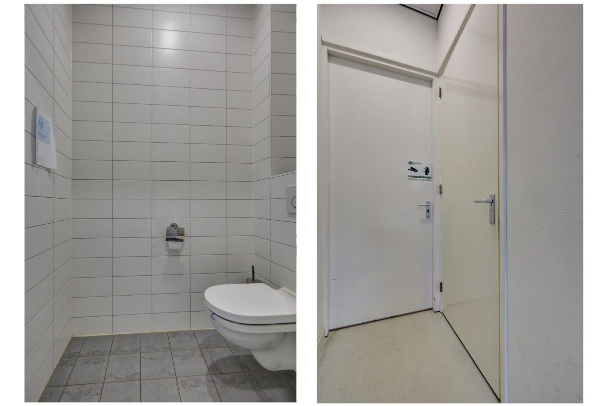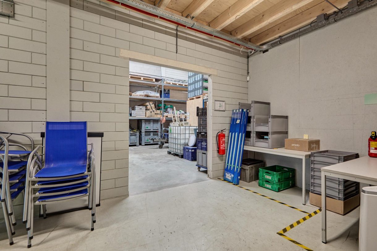 Via een uitsparing in de scheidende muur verschaf je toegang tot de tweede unit. Deze unit, eveneens voorzien van een separate entree en overhead deur, is op de etage geheel bevloerd, waardoor de ruime bedrijfsunit optimaal wordt benut. In deze unit is op de begane grond een opslag, pantry, hal met meterkast en toilet aanwezig, alsmede een werk/opslagruimte van circa 80 vierkante meter.