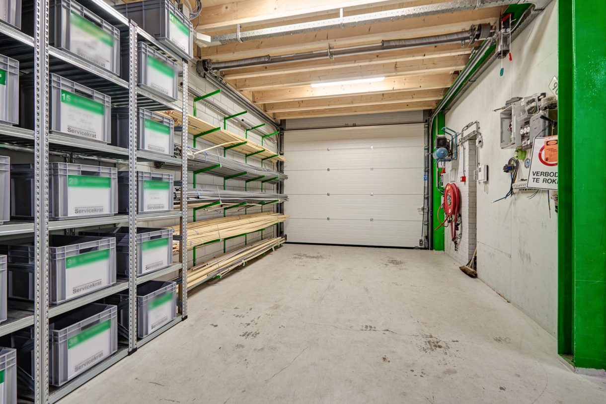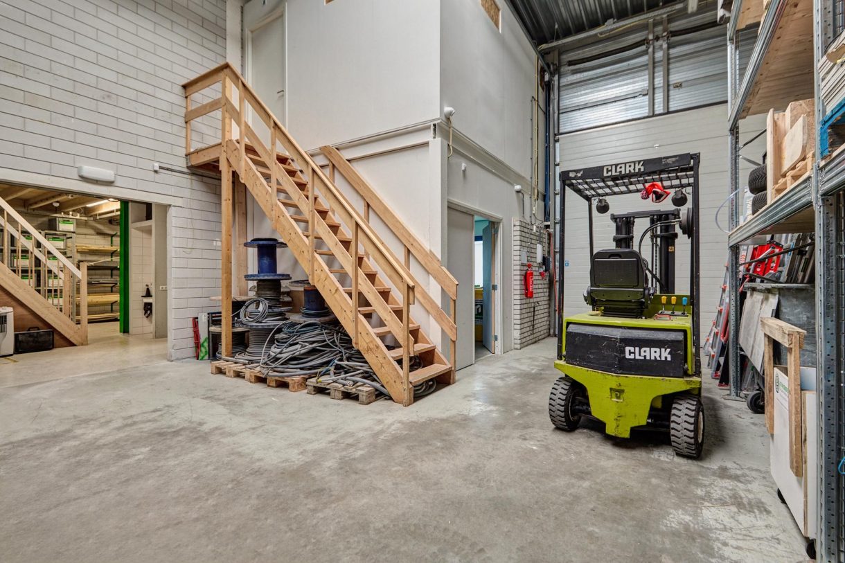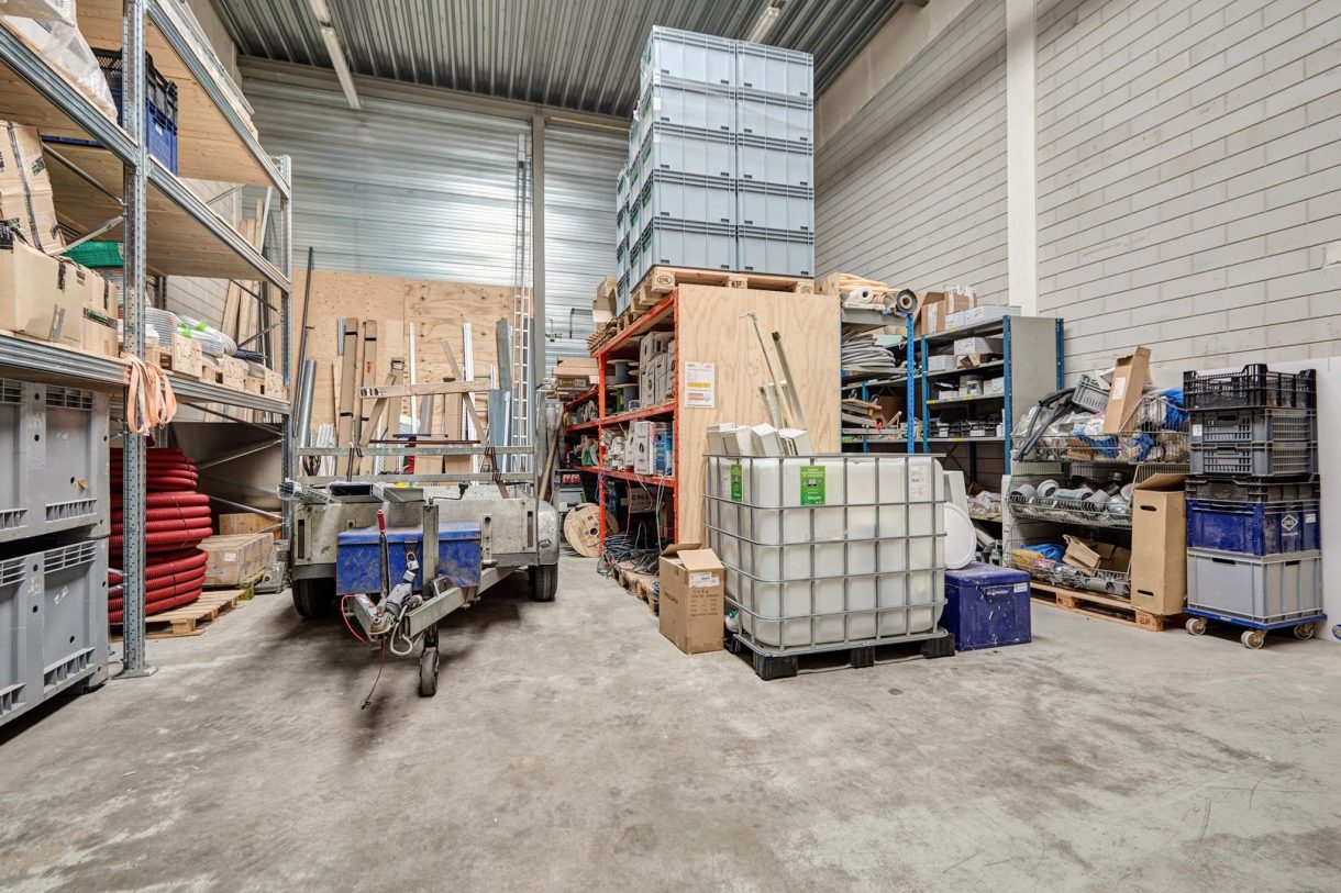 Wegens bedrijfsverplaatsing bieden wij deze royale, dubbele bedrijfsunit met onder meer een goed uitgerust kantoor te koop aan. De fraai bemeten bedrijfsruimte is onderverdeeld in een unit voor opslag, met een separate entree, hoge overheaddeur en aanlokkelijke vrije hoogte. In deze unit is een kantoor aanwezig op de etage, bereikbaar met een vaste trap.