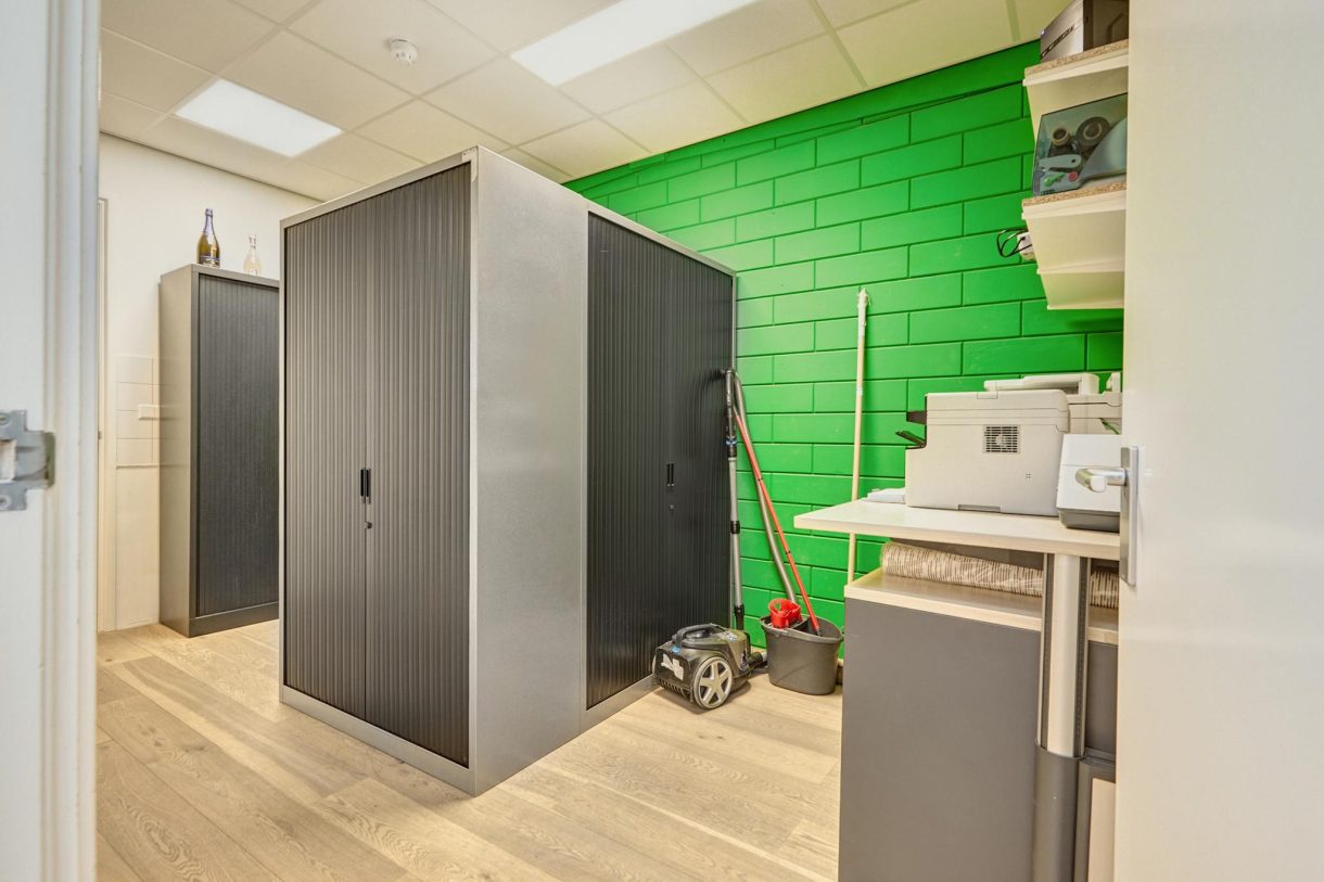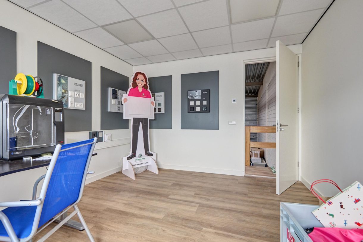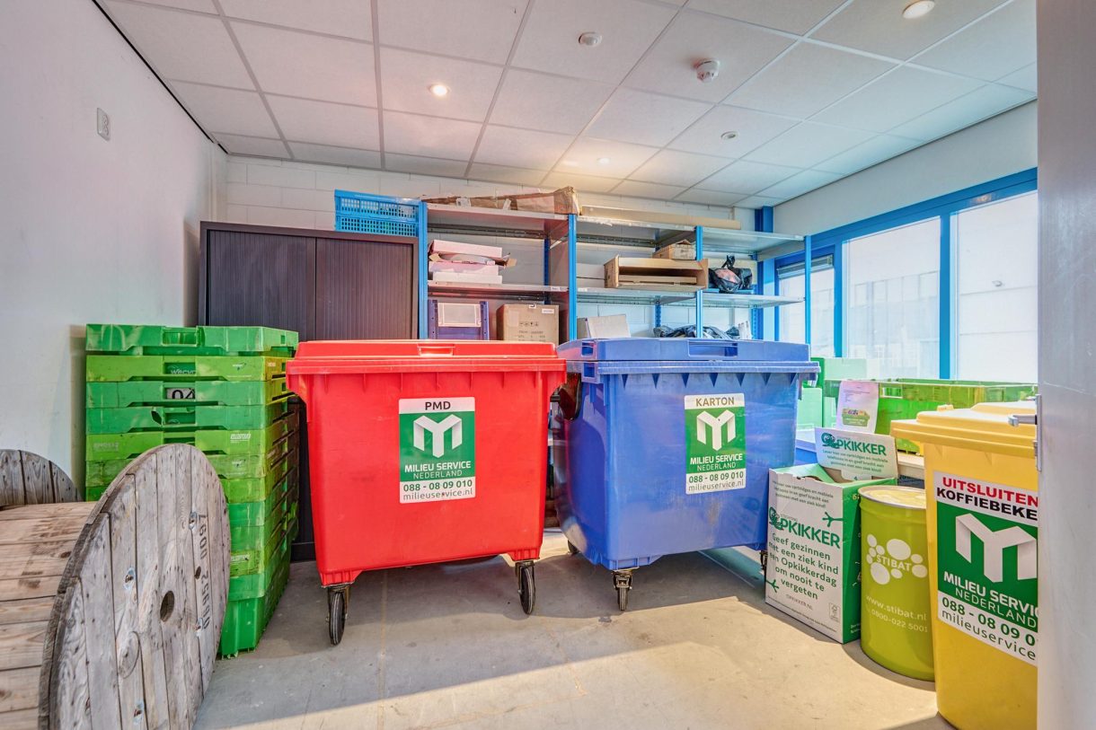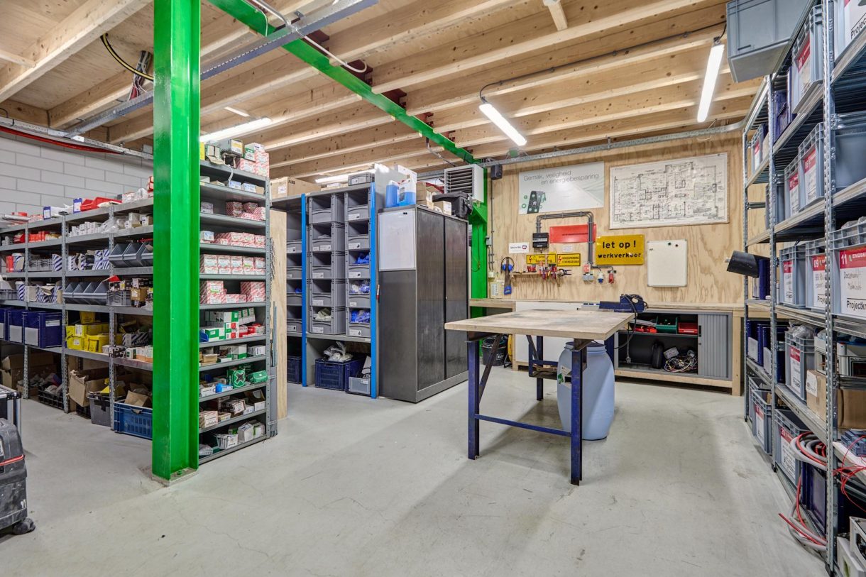 Wegens bedrijfsverplaatsing bieden wij deze royale, dubbele bedrijfsunit met onder meer een goed uitgerust kantoor te koop aan. De fraai bemeten bedrijfsruimte is onderverdeeld in een unit voor opslag, met een separate entree, hoge overheaddeur en aanlokkelijke vrije hoogte. In deze unit is een kantoor aanwezig op de etage, bereikbaar met een vaste trap.