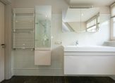 Op de eerste verdieping vind je twee ruime slaapkamers en een badkamer die is voorzien van een douche, bad, tweede toilet en een wastafelmeubel. Daarnaast is er een ruime inpandige berging en in het stolpdeel extra bergruimte die je desgewenst verder kunt inrichten.