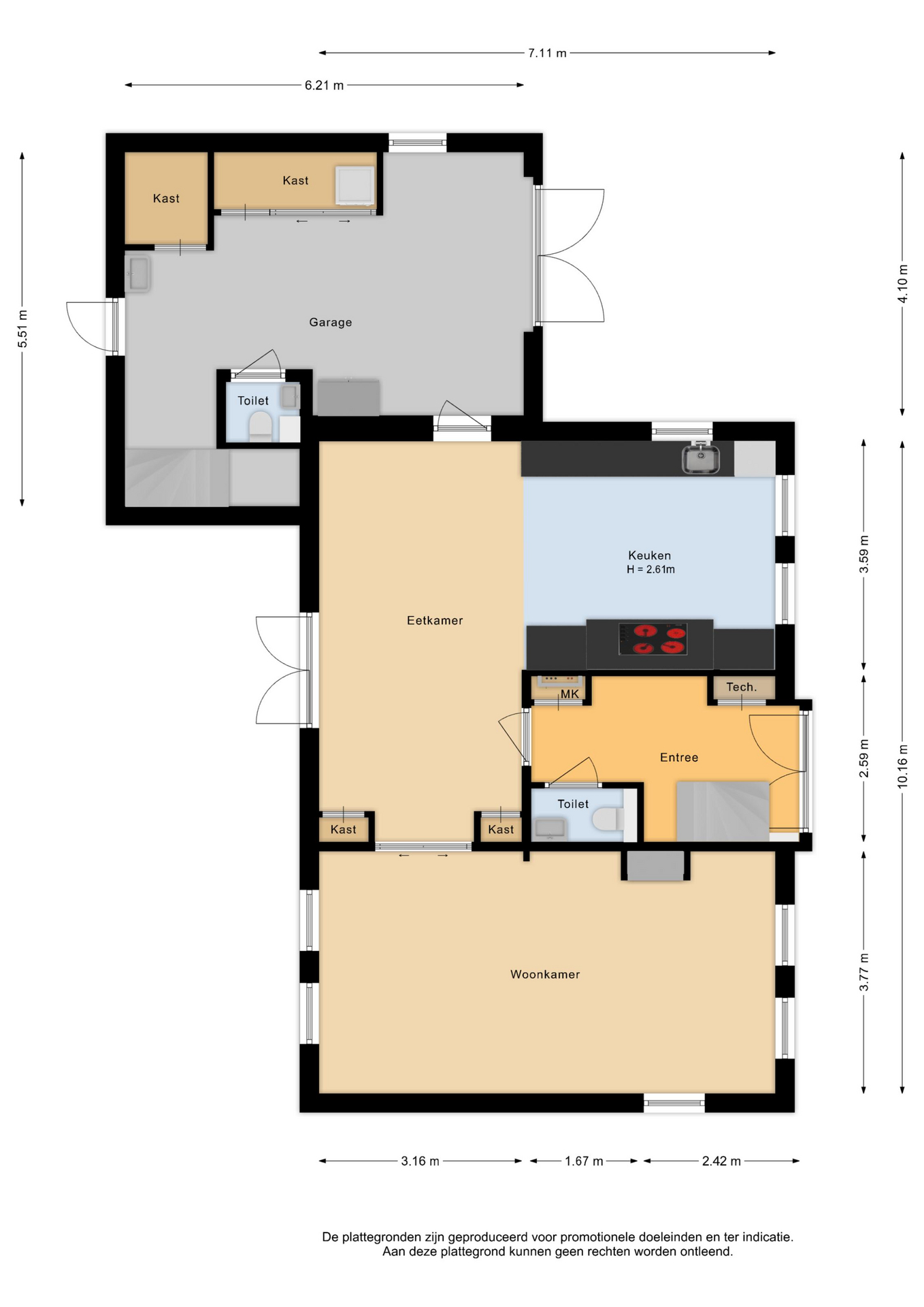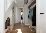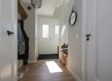 Vanaf de eerste aanblik maakt deze woning indruk. De landelijke voorgevel, compleet met openslaande garagedeuren, ademt karakter en harmonieert prachtig met de omgeving. En eenmaal binnen? Dan betreedt je niets minder dan een entree van koninklijke allure: een ruim bemeten hal met dubbele voordeuren, een separate toiletruimte en een statige trapopgang naar de eerste verdieping.