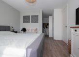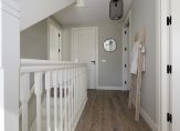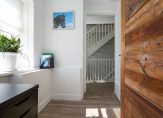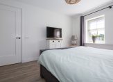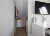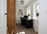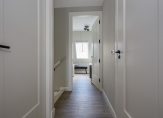 Via de hal op de begane grond betreedt je het hoofdgedeelte van de eerste etage. Hier tref je drie slaapkamers, waaronder een master bedroom met royale inloopkast. De derde slaapkamer is momenteel in gebruik als home-office, ideaal voor de thuiswerker van nu. De ruime badkamer biedt luxe in de vorm van een bad, separate douche, toilet en dubbele wastafel.