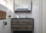 Op de eerste verdieping wacht je drie fijne slaapkamers, waarvan twee bijzonder ruim zijn dankzij de rechte gevels. Geen schuine wanden, wél volop mogelijkheden. De badkamer, in 2021 compleet vernieuwd, is een plaatje: luxe, modern, met een royale stortdouche en een stijlvol wastafelmeubel.