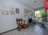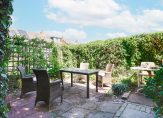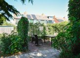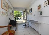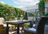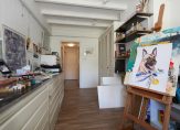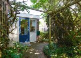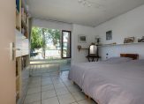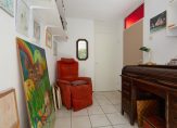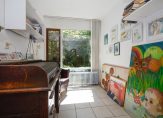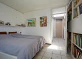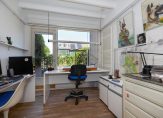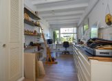 Verder telt de woning drie slaapkamers, een kantoor-/atelier-/hobbyruimte, twee badkamers en een apart toilet. De auto parkeer je moeiteloos op eigen terrein, aan de beschutte voorzijde van de woning.