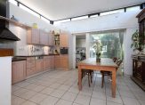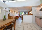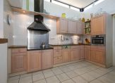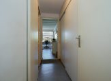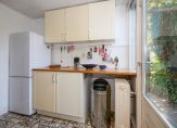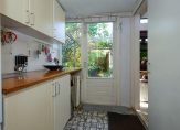 Doordat alles zich op de begane grond bevindt, is de woning bijzonder geschikt voor senioren of mensen met een mobiliteitsbeperking. De indeling is doordacht: aan de achterzijde bevindt zich de lichte woonkamer met openslaande deuren naar de tuin, terwijl aan de voorzijde een ruime open keuken is gesitueerd. Deze is voorzien van een verlaagd kookgedeelte en diverse inbouwapparatuur. Vanuit de keuken loop je door naar de bijkeuken, die een eigen deur naar de voortuin heeft. Achter de bijkeuken zit een separate wasruimte.