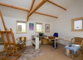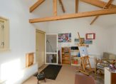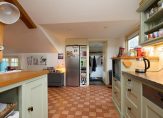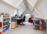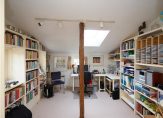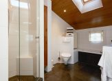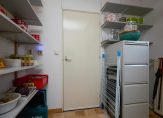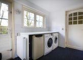 Praktisch gemak ontbreekt niet: er is een bijkeuken met aansluitingen voor een wasmachine en droger. Op de begane grond bevinden zich twee slaapkamers en twee badkamers, waarvan één is uitgerust met elektrische vloerverwarming en openslaande deuren naar de tuin. Deze woning is perfect als doorloopwoning en beschikt daarnaast over een kantoorruimte grenzend aan de woonkamer.