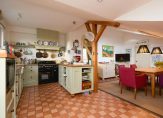 Stel je voor: vrijstaand wonen op een riant perceel van maar liefst 3.880 m², compleet met je eigen eilandje dat bereikbaar is via een eenvoudig houten bruggetje. Deze karakteristieke woning biedt niet alleen een woonoppervlak van 192 m², maar ook een adembenemend uitzicht over de omliggende landerijen. Binnen vind je authentieke details, zoals zichtbare plafondbalken en een gezellige houtkachel in de zithoek. De landelijke keuken met inbouwapparatuur en een uniek fornuis is een plek waar koken echt genieten wordt.