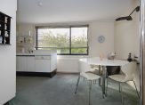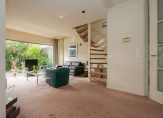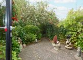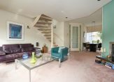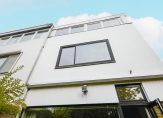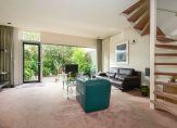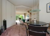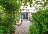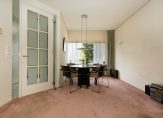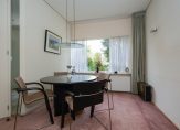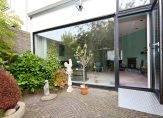 Door de slimme verplaatsing van de keuken naar de eerste verdieping is op de begane grond een royale woonkamer ontstaan met een bijna geheel glazen achterpui, die uitkijkt op de besloten, zonnige en weelderig groene tuin. De ruimte voelt licht en open aan en kan naar eigen smaak worden ingericht — van een gezellige leefruimte tot een moderne familiekamer. De woonkamer heeft bovendien een aparte koffiecorner, ideaal voor een ontspannen start van de dag.
