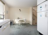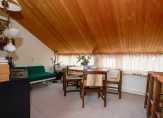 Op de eerste etage bevindt zich de keuken, samen met de hoofdslaapkamer en de badkamer, waardoor het comfort groot is en het dagelijkse leven zich moeiteloos op één niveau afspeelt. Voor wie liever de keuken weer beneden wil, kan dat eenvoudig — dan ontstaat er op deze verdieping ruimte voor een extra slaapkamer.