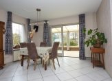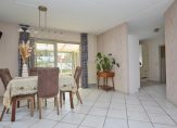 Een van de grootste pluspunten van deze woning is de ruime woonkamer, met aangebouwde en bovenal sfeervolle tuinkamer. Deze extra leefruimte is ideaal voor het creëren van een lichte en open sfeer, perfect voor een gezellige zithoek, hobbyruimte of als plek om te genieten van het uitzicht op de tuin. Dankzij de grote ramen wordt u als het ware omarmd door het groen, wat zorgt voor een heerlijk rustgevende ambiance.