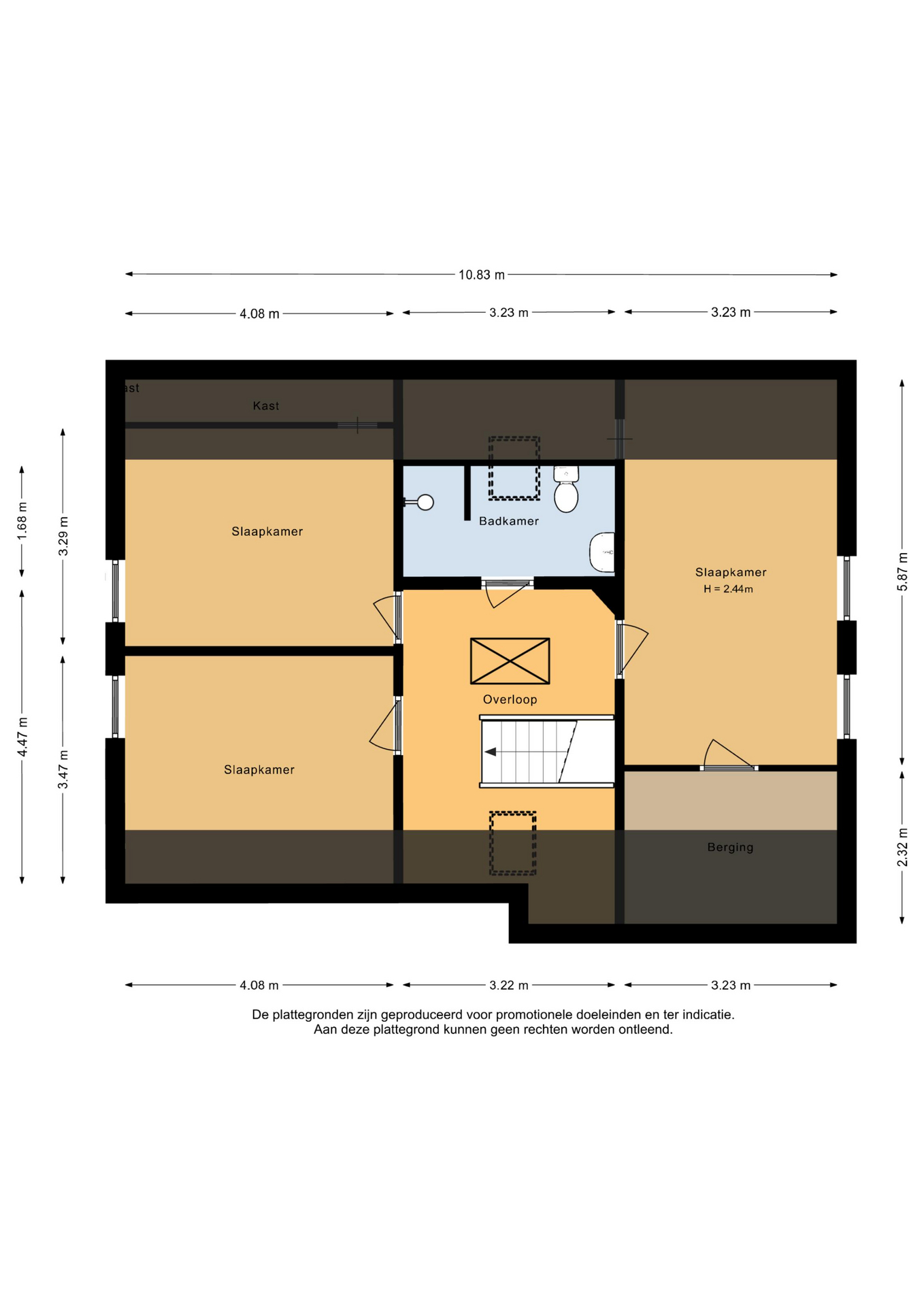 De tweede badkamer en de overige drie slaapkamers bevinden zich op de etage.