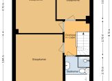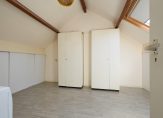De tweede verdieping is bereikbaar via een vaste trap en biedt extra gebruiksruimte dankzij een praktische voorzolder en een vierde kamer. Deze kamer is ruim van opzet, beschikt over veel daglicht en heeft volop bergruimte onder de schuine dakdelen – ideaal als extra slaapkamer, hobbyruimte of rustige werkplek.