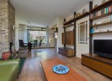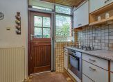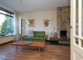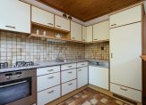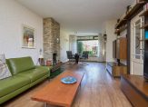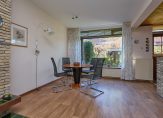 Binnen stap je in een klassieke doorzon woonkamer, heerlijk licht dankzij de grote ramen aan beide zijden. De open keuken is uitgevoerd in een lichte kleurstelling en geplaatst in een praktische U-opstelling met inbouwapparatuur. Hier kook je met gemak een doordeweekse maaltijd of juist iets speciaals voor visite.