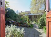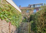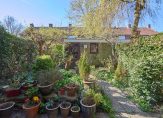 De achtertuin ligt op het zonnige zuiden en is groen en uitnodigend. Dankzij het zonnescherm bepaal je zelf of je van de zon geniet of liever de schaduw opzoekt. Helemaal achterin vind je een stenen berging, handig voor fietsen, tuingereedschap of hobbyspullen. Achter de berging ligt nog een stukje eigen grond – ideaal als extra buitenruimte voor bijvoorbeeld een moestuintje of een speelplek.