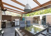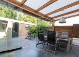 Als extra pluspunt is er de buitenruimte. Hoewel de dakplaten gedeeltelijk zijn verwijderd, biedt het stevige frame en de resterende platen volop mogelijkheden om deze ruimte weer om te toveren tot een volledig afsluitbare serre met glazen schuifpanelen. Met een kleine investering kunnen toekomstige bewoners hier een veelzijdige ruimte creëren om het hele jaar door van te genieten.