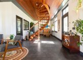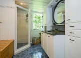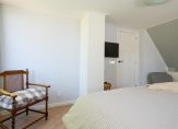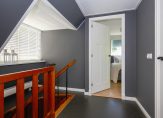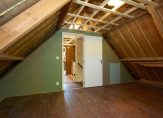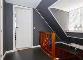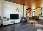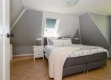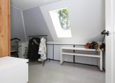 Centraal in de living staat de beeldbepalende karakteristieke wenteltrap, die leidt naar de verdieping. Hier bevinden zich twee comfortabele slaapkamers en een ruim opgezette badkamer, voorzien van een luxe douche, een wastafelmeubel en een modern toilet.