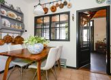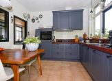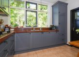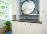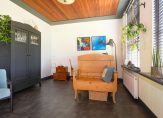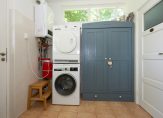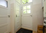 Deze vrijstaande stolpwoning, daterend uit de 19e eeuw, ademt karakter en historie. Achter de authentieke gevel schuilt een heerlijk lichte en open leefruimte, waar de zon via royale raampartijen rijkelijk naar binnen stroomt. De begane grond herbergt een sfeervolle werkkamer en een ruime, dichte keuken, voorzien van grote raampartijen die zorgen voor overvloedig daglicht. De keuken is bovendien verbonden met de woonkamer via doorkijkramen, waardoor de ruimten afzonderlijk blijven maar toch met elkaar communiceren. Hier kun je met de bramen uit eigen tuin moeiteloos een potje huisgemaakte jam bereiden.