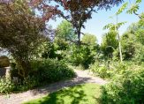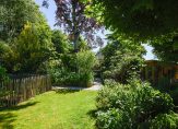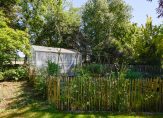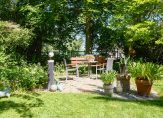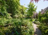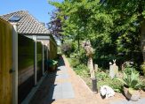 De tuin biedt een schat aan mogelijkheden: er is voldoende ruimte voor het houden van dieren zoals kippen en schapen, een gedeelte is ingericht als moestuin, en rondom de vijver geniet je van rust en kleur. Vissen in de vijver is niet toegestaan, maar gelukkig stroomt er een brede sloot om het perceel waar hengelaars wel terechtkunnen.