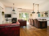 Het buitenleven wordt hier in al zijn glorie gevierd. De uitgestrekte kavel met 28 zonnepanelen, goed voor ruim 11 duizend kWh en een energielabel B, biedt niet alleen duurzaamheid maar ook een overvloed aan ruimte en vrijheid. De charmante woning zelf is in de loop der jaren uitgebreid tot een zeer royale woning, die moderne gemakken moeiteloos combineert met tijdloze elegantie. De woonkamer, voorzien van twee paar openslaande deuren naar zowel de tuin als de veranda, biedt een beschutte plek om te genieten van het buitenleven. De houtkachel zorgt voor een gezellige sfeer tijdens de koudere maanden.