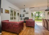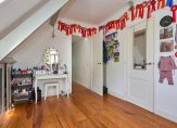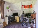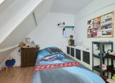 De woonkeuken in de zijuitbouw is het hart van het huis, ideaal voor culinaire avonturen en gezellige familiemaaltijden. De praktische tussenhal met toilet en ruimte voor de wasmachine en droger maakt het dagelijkse leven nog comfortabeler. De tweede woonkamer aan de voorzijde, met TV-hoek en aangrenzende slaapkamer, biedt extra leefruimte en privacy. De ingebouwde vaste kasten bieden volop opbergruimte. Vanuit deze woonkamer leidt een tussenhal naar de trapopgang naar boven, waar drie slaapkamers en een badkamer, uitgerust met dakkapellen voor extra ruimte en licht, te vinden zijn. De overloop biedt toegang tot de bergvliering, ideaal voor extra opslag. De woning is bovendien voorzien van airconditioning voor optimaal comfort tijdens de warme zomerdagen.