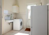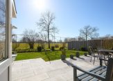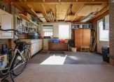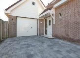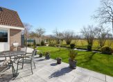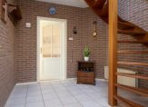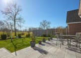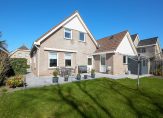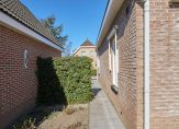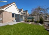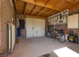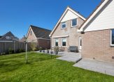 Achter de keuken bevindt zich de bijkeuken, een praktische ruimte met aansluitingen voor de wasmachine en droger, een spoelbak en voldoende plek voor een extra koelkast of vriezer. Vanuit hier is de inpandige garage bereikbaar, een verwarmde en goed uitgeruste ruimte met elektra en een vliering voor extra opslag. De achtertuin, gelegen op het zonnige zuiden, is zowel via de bijkeuken als via de garage te bereiken. Hier kun je in alle rust genieten van het vrije uitzicht en het aangrenzende water, zonder directe achterburen. De tuin beschikt over een achterom en is voorzien van een buitenkraan met wasbak, ideaal voor wie graag in de tuin werkt en daarna snel de handen wil wassen.
