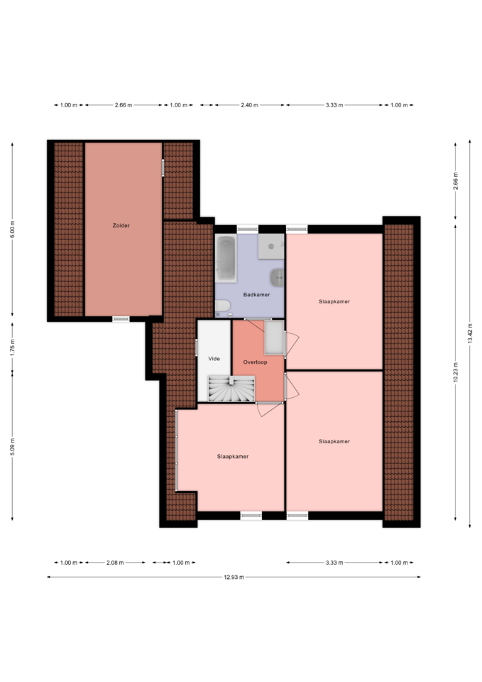 Via een vlizotrap op de overloop is de ruime vliering bereikbaar, een extra bergruimte voorzien van elektra en een dakraam voor natuurlijke lichtinval.
