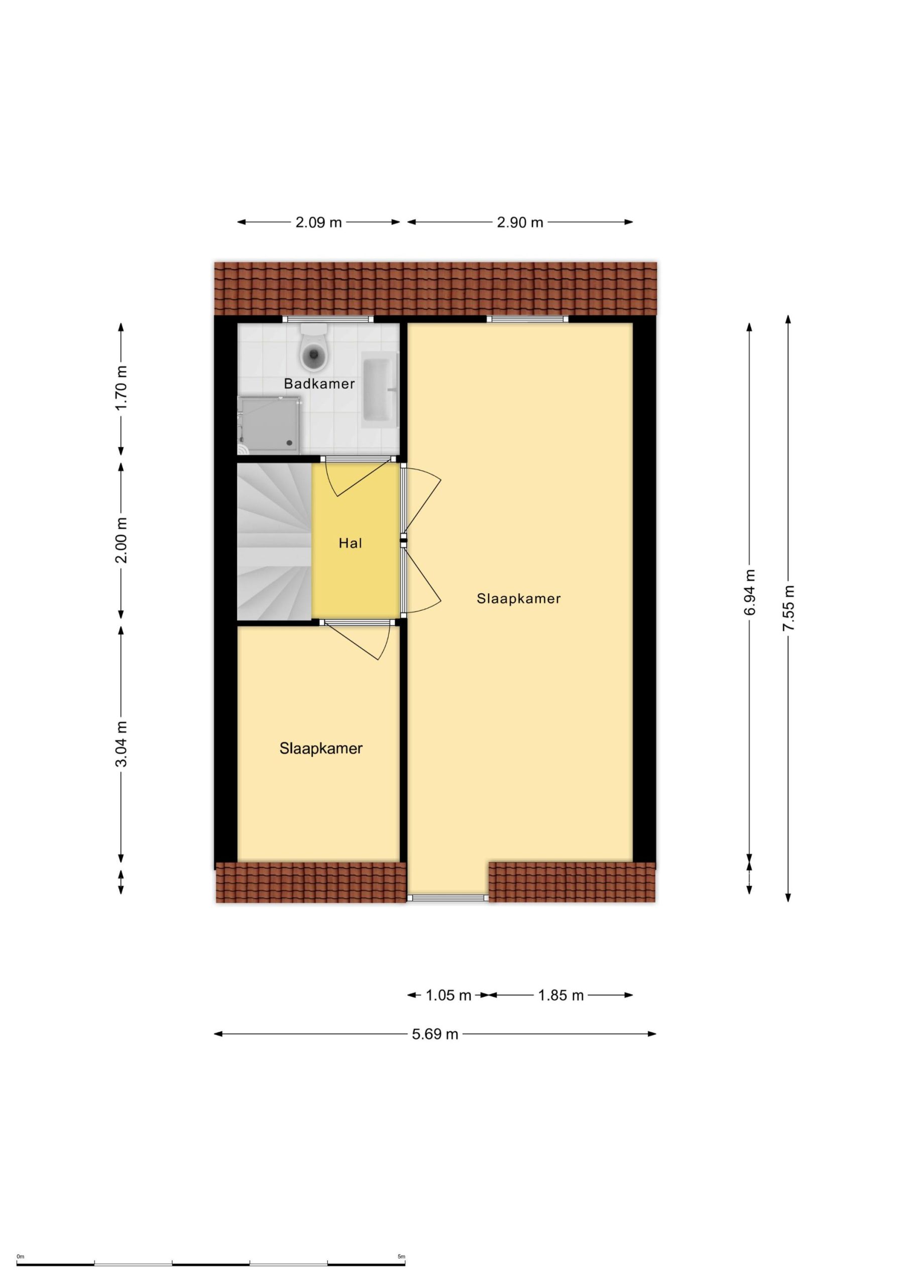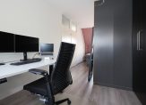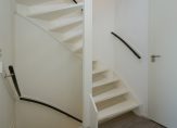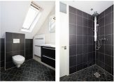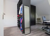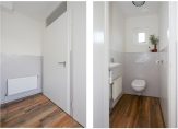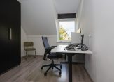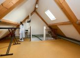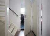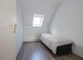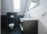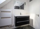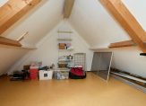 Boven tref je de overloop, twee ruime slaapkamers en de badkamer. Voorheen waren dit drie slaapkamers, maar dit is eenvoudig terug te brengen aangezien de deuren nog altijd op hun plek staan. De badkamer is praktisch en compleet ingericht met een inbouwtoilet, een modern wastafelmeubel, een douche en een kiepkantelraam dat zorgt voor daglicht en frisse lucht. Een vaste trap brengt je naar de zolder, waar je naast de cv-opstelling ook volop mogelijkheden hebt voor extra bergruimte of een hobbyhoek.