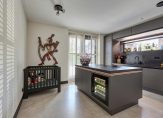 Bij aankomst parkeren we de auto op de eigen oprit en bereiken we de overkapte voordeur van de woning, gelegen aan de zijkant. Direct aan je linkerhand bevindt zich een ruime (fietsen)berging. Bij binnenkomst via de entree vind je een garderobe, meterkast, keurig betegeld toilet met fonteintje, bergkast en toegang tot de woonkamer met open keuken. De zeer ruime woonkamer met elegante cinewall met haard beschikt over maar liefst vier paar openslaande deuren naar de tuin. Twee aan de achterzijde, een aan de zijkant en een bij de keuken die toegang biedt tot de voortuin. In de lichte woonkamer is er voldoende ruimte voor een royale zithoek en een werkplek. Aan de voorzijde treffen wij de nagelnieuwe, moderne keuken met eiland met inductie kookplaat met geïntegreerd afzuigsysteem en klimaatkast. Een genot voor het oog, waar het gastronomische hart sneller van mag gaan kloppen.