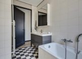 Via de trap bereiken we de overloop van de eerste verdieping. Hier vinden we vier lichte, royale slaapkamers, de badkamer en een kast. Een van de slaapkamers aan de achterzijde heeft openslaande deuren naar een Frans balkon. De tweede slaapkamer ligt aan de voorzijde, terwijl de derde en vierde slaapkamer en de badkamer centraal op de verdieping zijn gelegen. Alle slaapkamers zijn heerlijk licht. De luxe betegelde badkamer is voorzien van een zwevend toilet, een ligbad, een badmeubel, inbouwspots en een inloopdouche met regendouche.