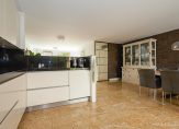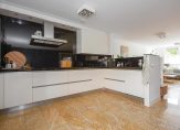 Met een woonoppervlakte van bijna 150 vierkante meter biedt deze woning ruimte in overvloed, zowel in beleving als in daadwerkelijke vierkante meters. De begane grond is uitgevoerd met een natuurstenen vloer en comfortabele vloerverwarming, terwijl de uitgebouwde achterzijde plaats biedt aan een riante woonkeuken – een plek waar culinaire passie en gezellig samenzijn moeiteloos samenvloeien. De keuken is voorzien van luxe inbouwapparatuur, subtiel verweven in het geheel.