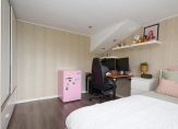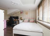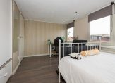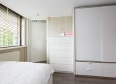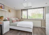 Op de eerste verdieping bevinden zich twee slaapkamers, een separaat toilet en een stijlvolle, eigentijdse badkamer. De royale hoofdslaapkamer is ontstaan uit het samenvoegen van twee ruimtes en laat zich desgewenst weer opsplitsen – zo blijft de mogelijkheid tot vijf volwaardige slaapkamers behouden. De tweede etage, waar bij dit type woning doorgaans slechts een bergzolder schuilgaat, verrast hier met grandeur: dankzij een brede kunststof dakkapel – een doordachte toevoeging – zijn hier twee volwaardige slaapkamers gecreëerd. Ook hier bewijst de woning haar meerwaarde, waarin functionaliteit en schoonheid hand in hand gaan.