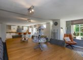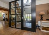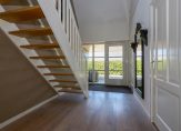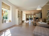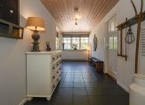 Een riante hal met vide en glazen scheidingswand verwelkomt u in stijl. De woning telt drie royale woonvertrekken, elk voorzien van haard, openslaande deuren en uitzicht op de fraai aangelegde tuin.