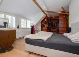 Op de eerste etage bevindt zich een royale overloop, met toegang tot drie ruime slaapkamers, waarvan de hoofdslaapkamer beschikt over een riante inloopkast. De badkamer is modern en voorzien van een vrijstaand ligbad, inloopdouche, dubbele wastafel en vloerverwarming. Ook vindt u hier een tweede toilet, inpandige berging, cv-/technische ruimte en een geluidsstudio.