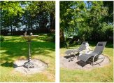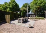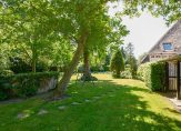De tuin is professioneel aangelegd en rijk aan biodiversiteit – vogels, bijen en vlinders voelen zich hier meer dan welkom. Het elektrisch sierhekwerk, de grindoprit en de mogelijkheid tot het parkeren van meerdere auto’s benadrukken het statige karakter. Voor de dierenliefhebber is er ruimte voor een kippenren, een hondenkennel met geïsoleerd hok en zelfs plek voor schapen of ander kleinvee. Een gedeelte van de tuin is ingericht als moestuin, en hoewel de vijver enkel dient ter decoratie, kunt u in de omliggende sloot naar hartenlust vissen.