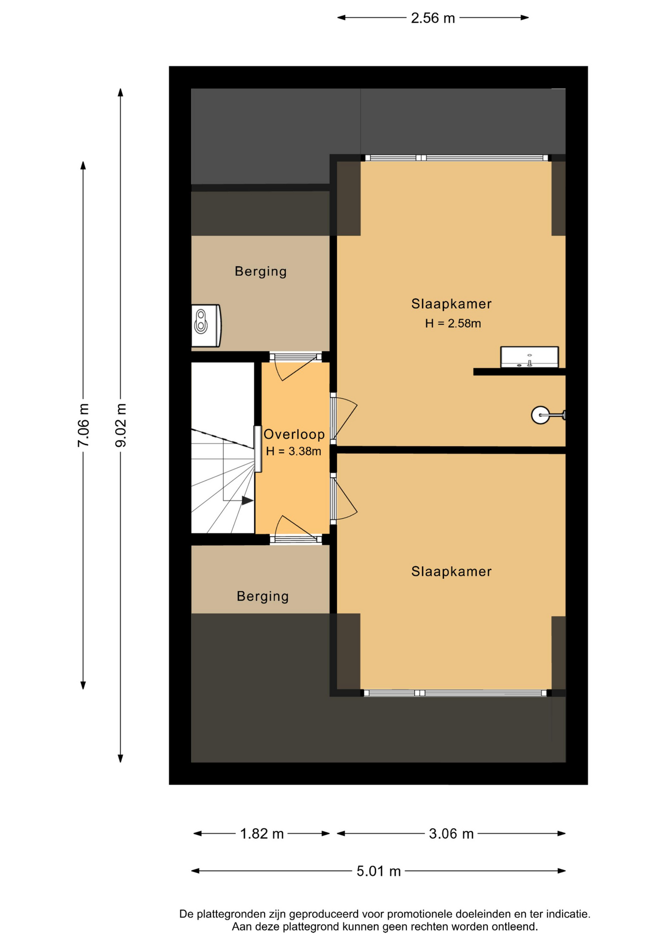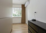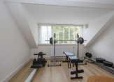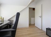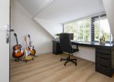 Op de eerste etage tref je twee slaapkamers, waarvan één voorzien van airconditioning en een royale walk-in closet. Verder vind je hier de wasruimte met aansluitingen voor was- en droogmachine en een badkamer met douche, toilet en wastafelmeubel. Deze verdieping is volledig voorzien van onderhoudsarme kunststof kozijnen. Via de vaste trap bereik je de tweede etage, waar dankzij twee dakkappellen twee ruime slaapkamers zijn gecreëerd. Deze kamers zijn momenteel in gebruik als kantoor en home gym, compleet met wastafel en inloopdouche. Daarnaast biedt deze etage de stookruimte en voldoende extra bergruimte.