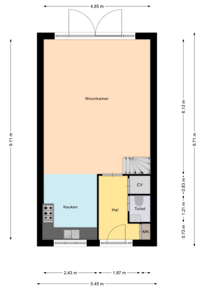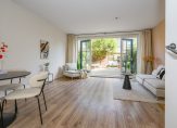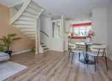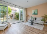 Stap binnen in de lichte woonkamer, waar de open keuken in frisse kleurstelling direct in het oog springt. Hier kook je met plezier terwijl je verbonden blijft met de rest van de leefruimte. Vanuit de woonkamer leidt een stijlvolle trap je naar de eerste verdieping, terwijl openslaande deuren je uitnodigen de achtertuin te betreden. En wat een geluk: deze ligt precies zo dat jij, zodra je thuiskomt van je werk, kunt neerploffen en genieten van de middag- en avondzon.