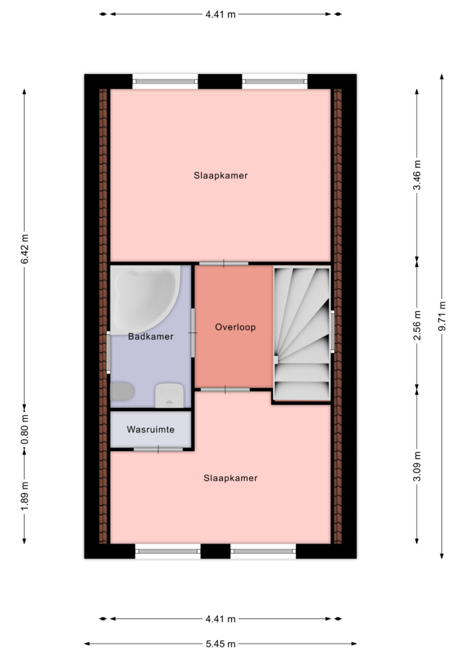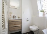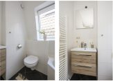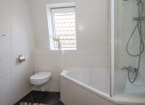 Op de eerste verdieping vind je twee comfortabele slaapkamers. Eén kamer is slim ingericht met een eigen wasruimte – praktisch en efficiënt. De badkamer biedt pure verwennerij: een wastafelmeubel, toilet, ligbad én douche, alles in een fijne en verzorgde uitvoering.