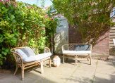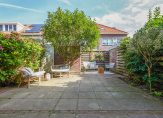 De achtertuin is ook via de achterom bereikbaar, ideaal wanneer je met de fiets thuiskomt en deze in de stenen berging wilt stallen. Een tuin met privacy, zon en praktische indeling – precies wat je nodig hebt.